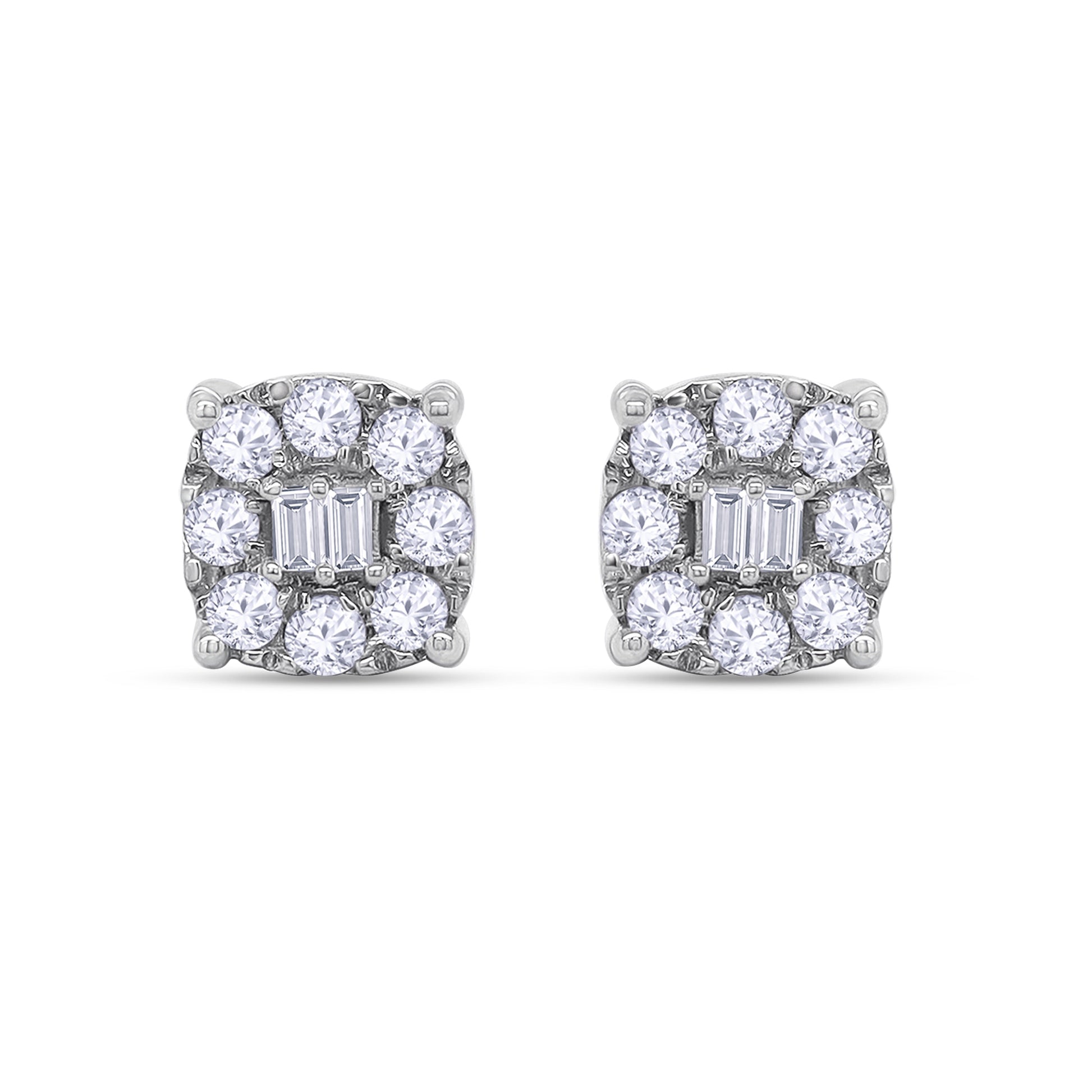 Round and Baguette 0.25 Carat Lab Grown Diamond Square Stud Earrings