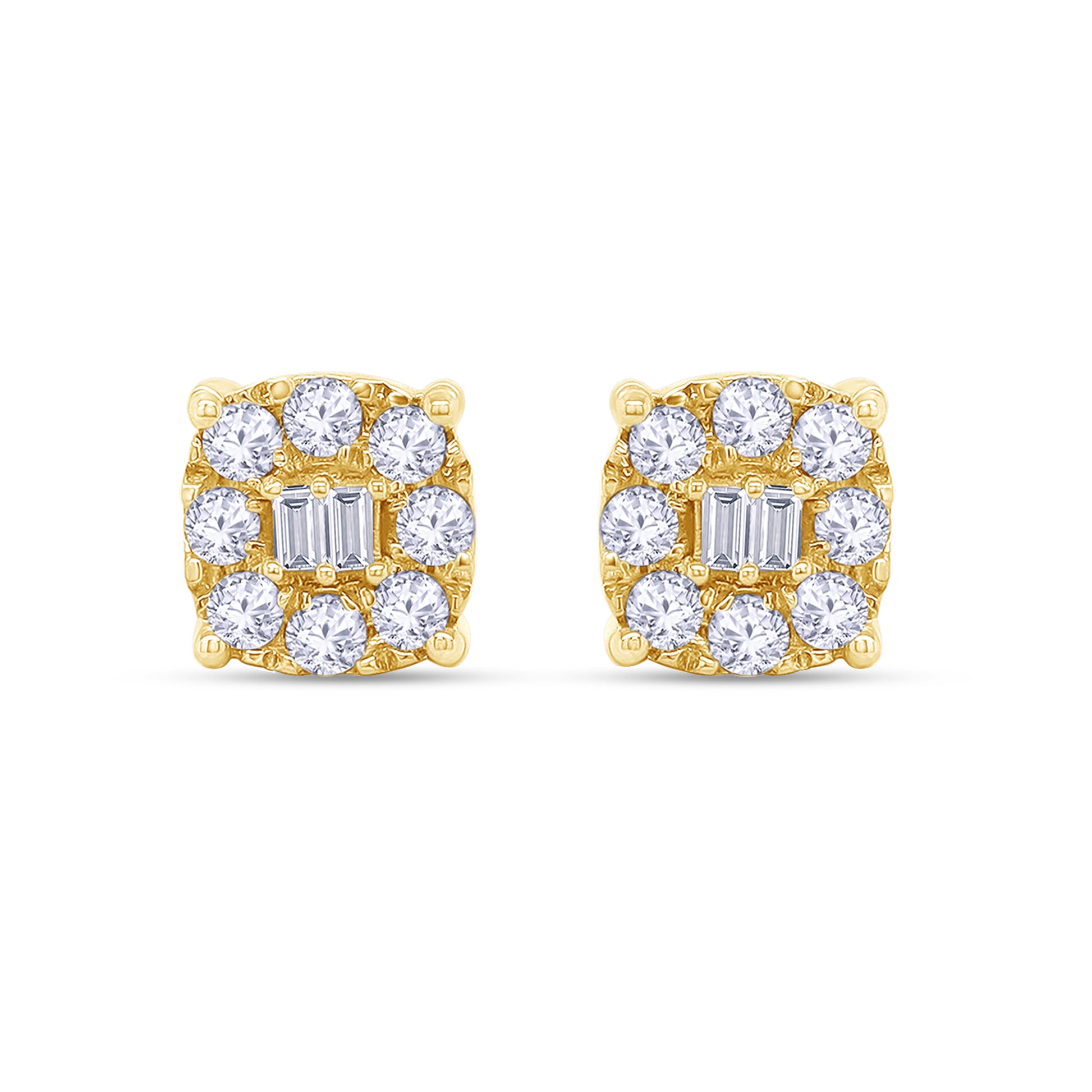Elevate your elegance with these Round and Baguette 0.25 Carat Lab Grown Diamond Square Stud Earrings. Featuring a refined mix of sparkling round and baguette-cut lab-grown diamonds, these earrings offer a radiant yet modern silhouette. Perfectly crafted for a timeless look, they add subtle brilliance to any outfit while embodying ethical luxury. Ideal for both everyday wear and special occasions, they seamlessly combine sophistication with sustainable beauty.